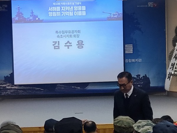 강원 | [속초지회] 제10회 서해수호의 날 기념식 참석 페이지 정보 작성자 김수용 작성일25-04-02 10:16 조회2,448회 댓글0건 관련링크 이전글 다음글 목록 본문 ▶일시: 2025년 3월28일(금) 10:00 ~ ▶장소: 속초시 근로자 종합복지관▶내용: 「 제10회 서해수호의 날 기념식」참석 이전글 다음글 목록