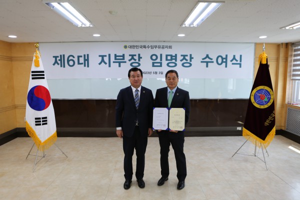 대한민국특수임무유공자회(회장 김용덕)는 2023년 5월 3일, 제6대 지부장 임명장 수여식을 진행하여
